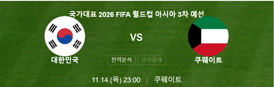 - 11월 14일: 대한민국 vs 쿠웨이트