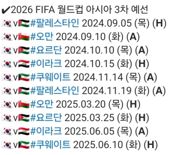 <2026 FIFA 월드컵 아시아 3차 예선 일정>