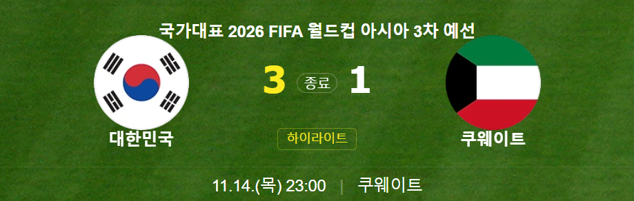 이번 경기는 대한민국 축구의 저력을 확인할 수 있는 중요한 승리였습니다. 앞으로 있을 월드컵 예선 경기에서도 대한민국의 승리가 계속되기를 기대해 봅니다.