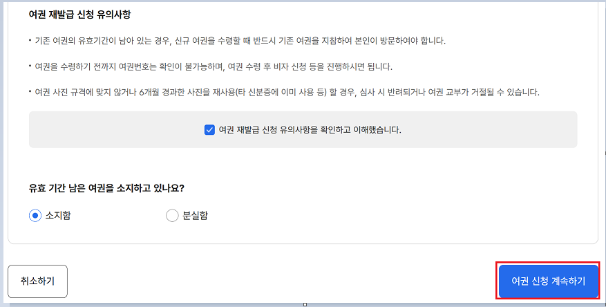 첫 번째 여권 신청의 경우 온라인 재발급이 불가능하다는 점을 유의하세요.