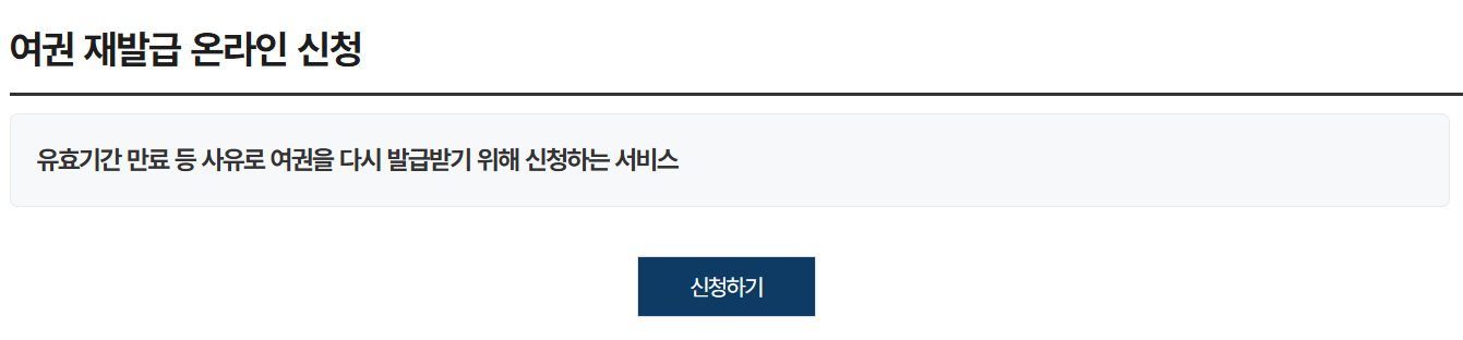 - 여권 유효기간 만료로 인해 재발급이 필요한 경우