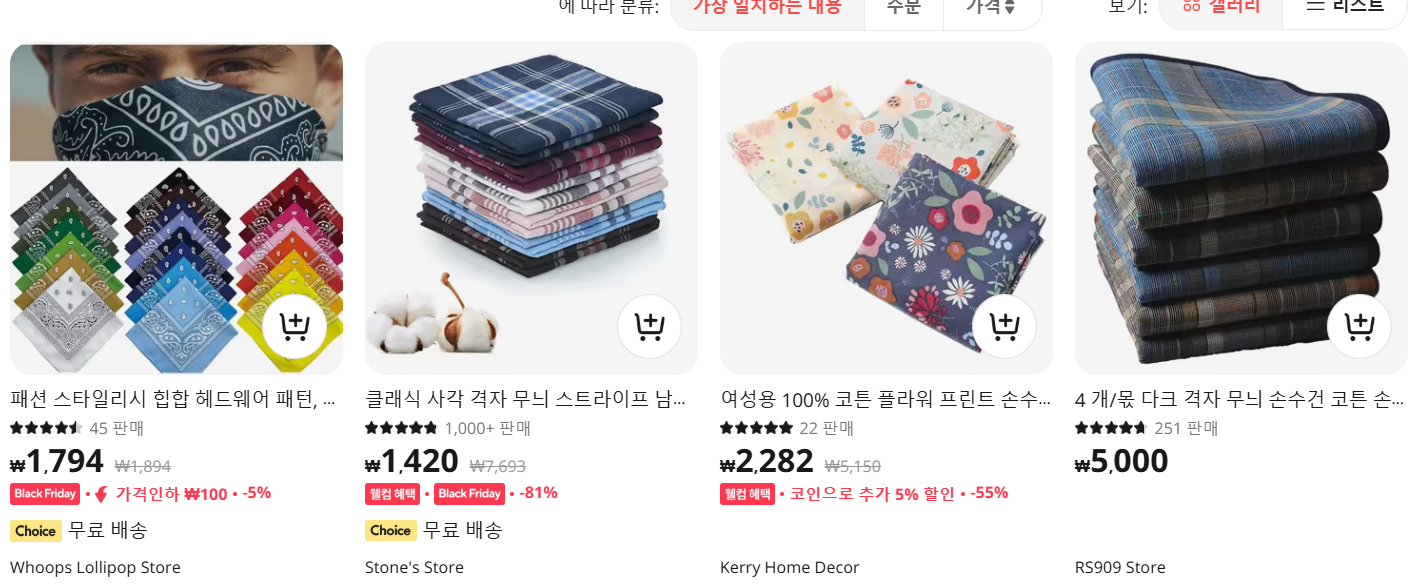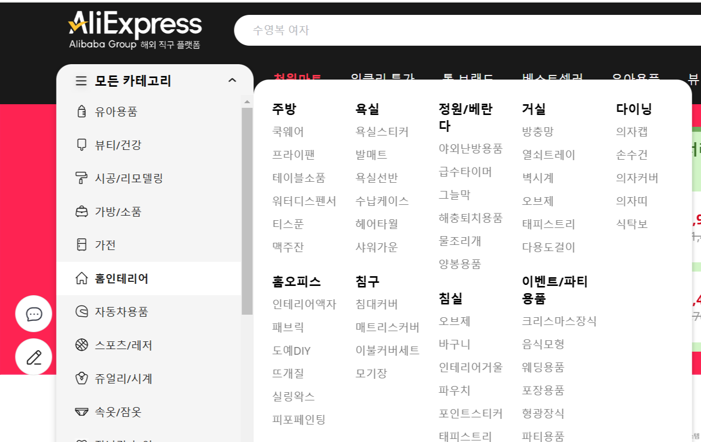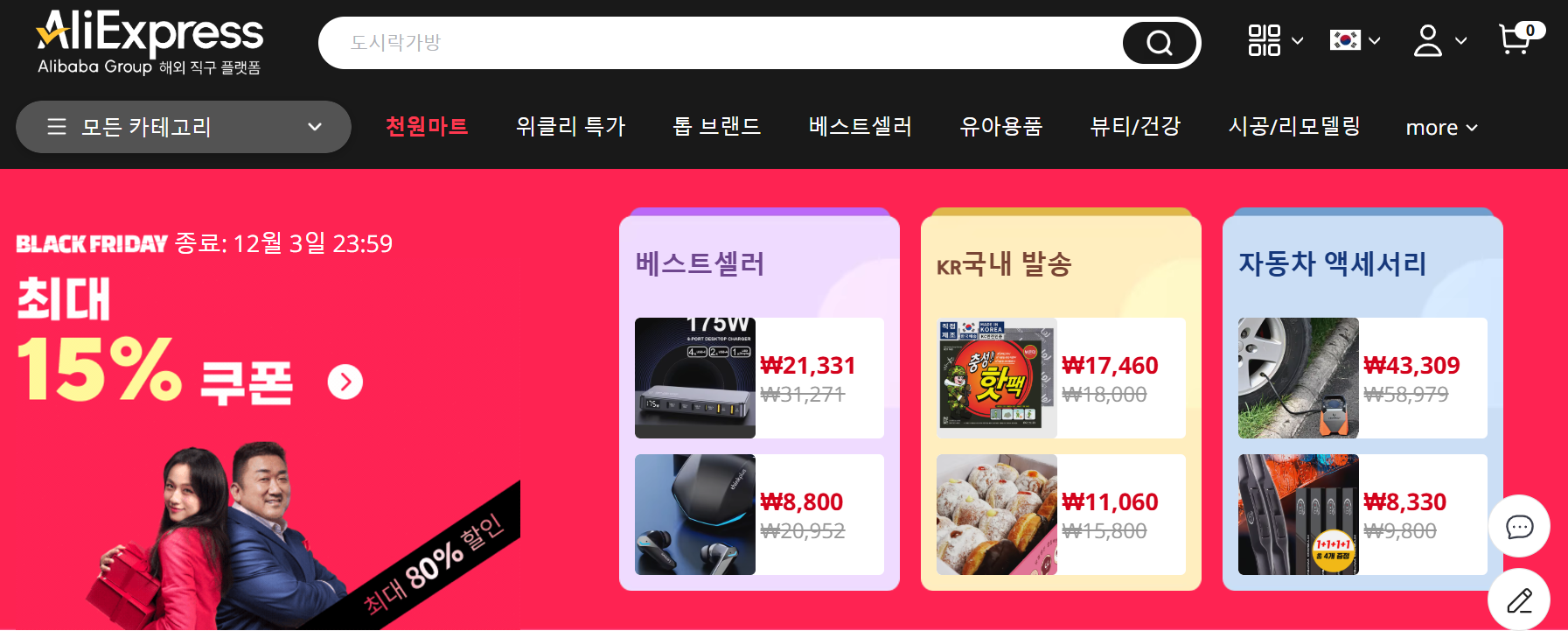 - 특징: 전 세계 판매자가 다양한 상품을 판매하며, 저렴한 가격이 가장 큰 장점입니다.