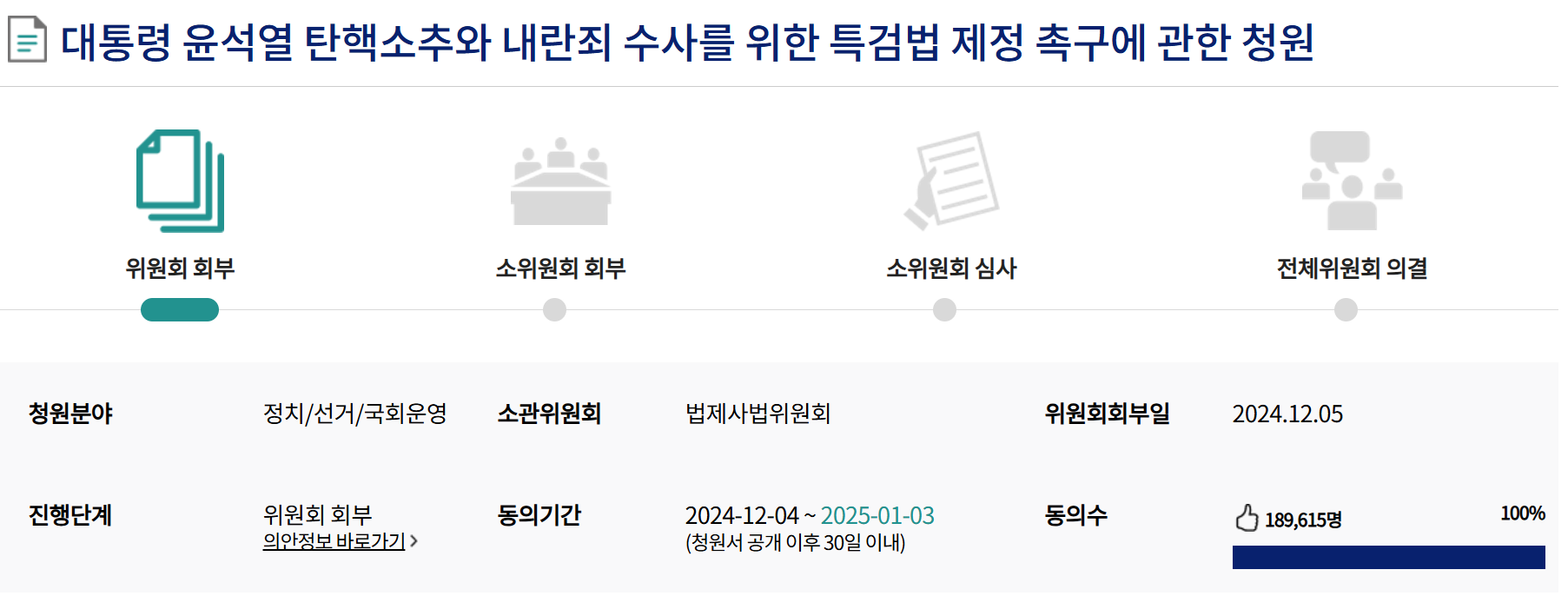 - 한 청원은 189,615명의 서명을 기록하며 지속적인 관심을 받고 있습니다.