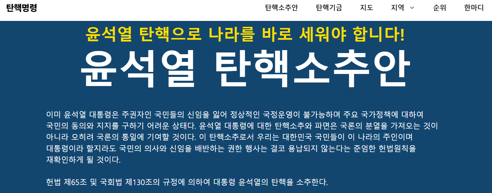 - 전용 청원 사이트: 윤석열 대통령의 탄핵소추를 촉구하는 청원이 올라온 사이트입니다.