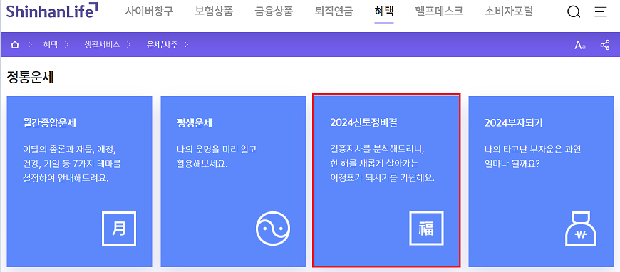 신한라이프는 보험과 함께 제공되는 운세 서비스로, 2025년 신년운세 무료보기를 제공합니다. 사주와 관련된 깊이 있는 정보를 바탕으로 새해의 흐름을 미리 점칠 수 있습니다. 보험 상품과 연계된 혜택도 놓치지 마세요.