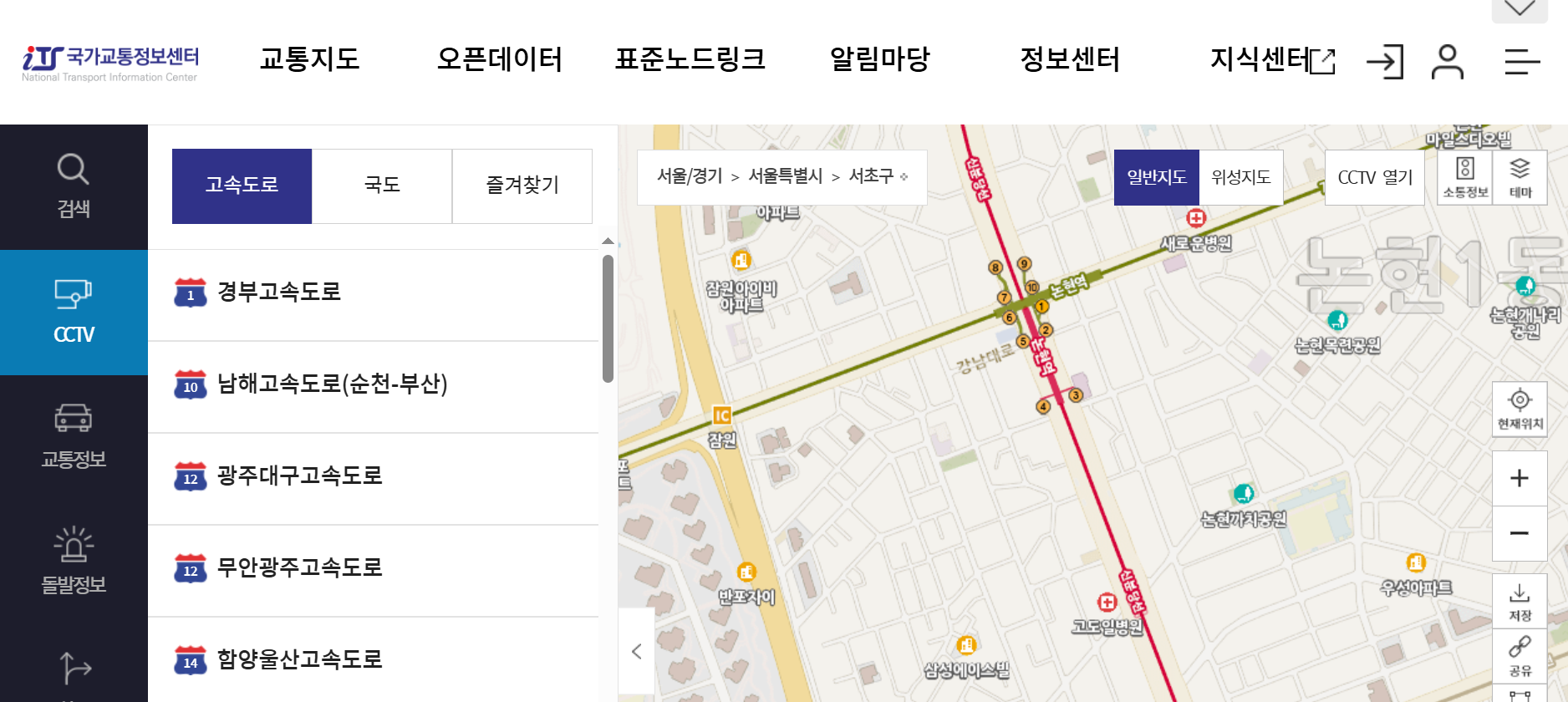 1. 국토교통부 교통정보센터: CCTV로 실시간 확인
