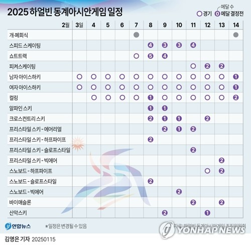 대회는 2월 7일 개막식으로 시작하여 2월 14일 폐막식으로 마무리됩니다. 주요 경기 일정은 다음과 같습니다:
