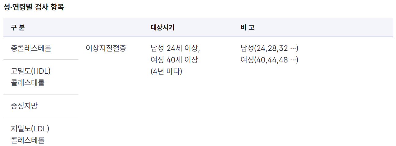 📌 각 항목은 연령대 및 성별에 따라 다르게 적용됩니다.