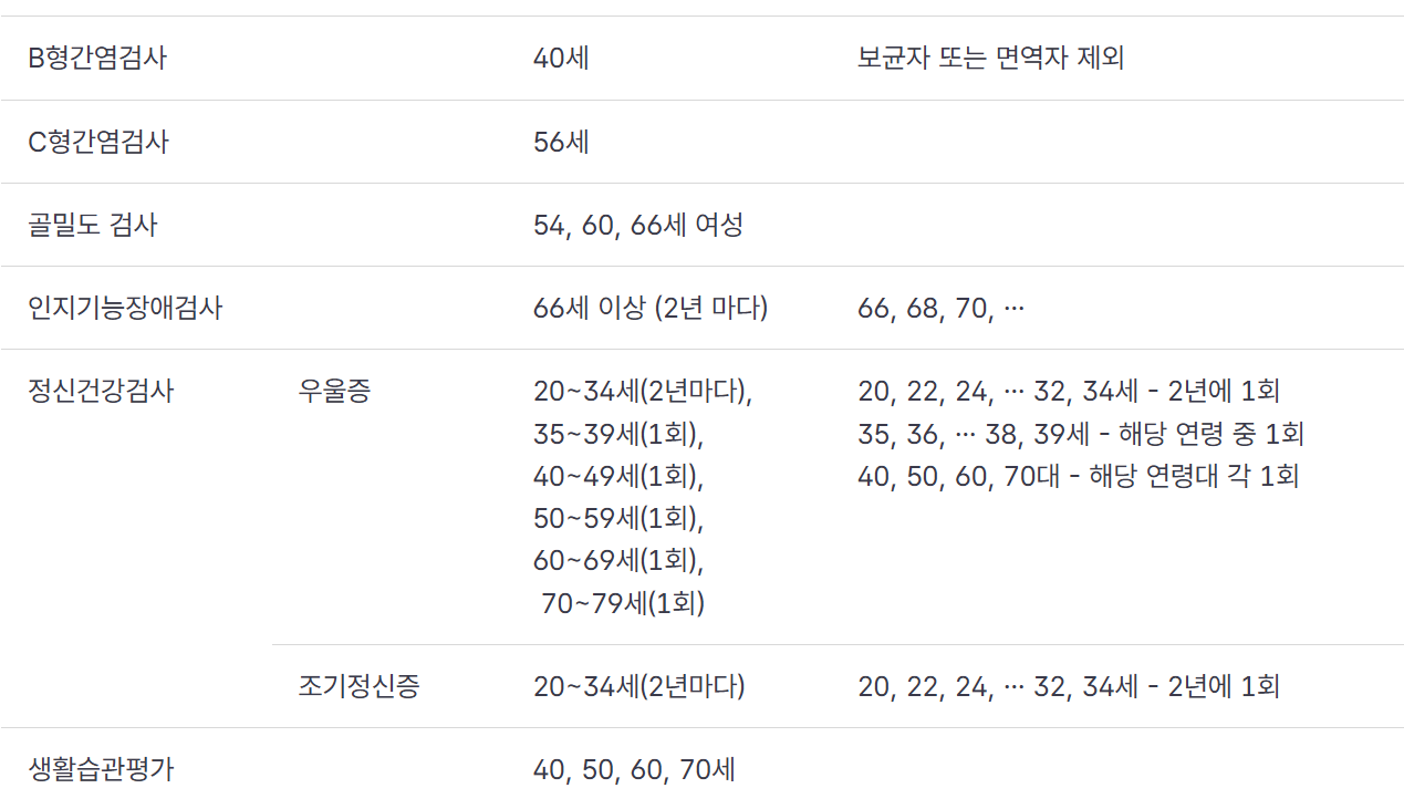 🩺 국가건강검진 검사 항목 (연령대별 정리)