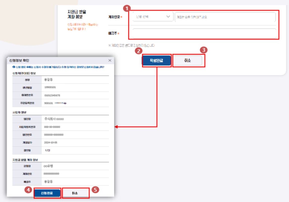 📍 STEP 4: 신청정보 입력 후 지급받을 계좌 입력